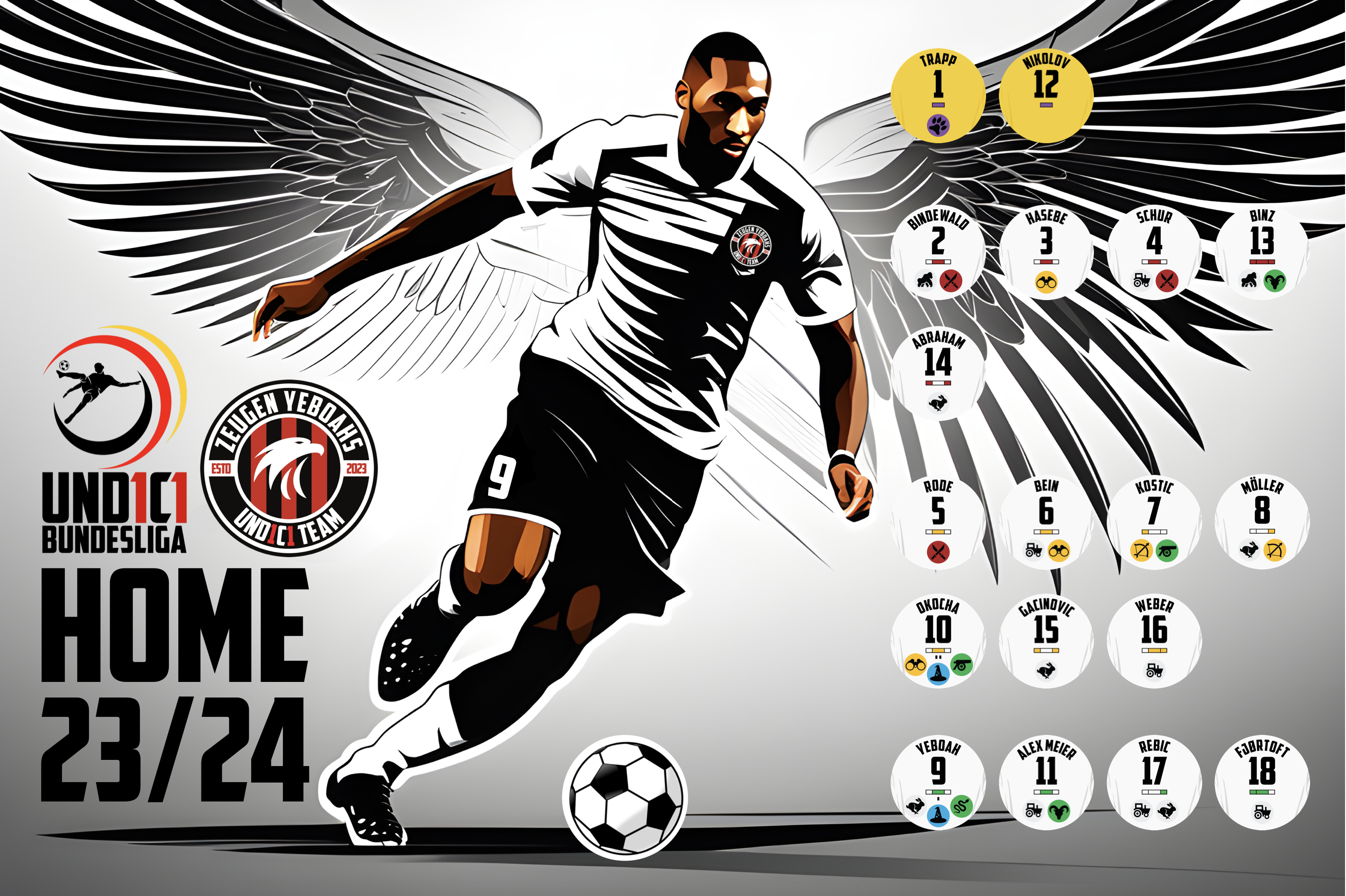 Im Jahre 1899 wurde der Verein als Vogelschutzverein gegründet. Seine erste Erwähnung ist in den Annalen des hessischen Verbandes für Adlerschutz vermerkt. Sein Hauptziel war die Pflege und Fortpflanzung der ansässigen Steinadler, welcher das Vereinswappen ziert. Anfang des 20. Jahrhunderts begannen die Falkner in ihrer Freizeit dem Ball anstatt der Beute hinterherzujagen. Im Laufe der Jahre und mit wachsendem Erfolg wurde die heimige Falknerei zu klein und es wurde ein neues Stadion erbaut - das Waldstadion. Den größten Erfolg der jungen Vereinsgeschichte wurde 1932 mit dem Titel "Süddeutscher Meister" und nach einer 0:2-Niederlage gegen den Bauern "Deutscher Vizemeister" verzeichnet. In der dunkelsten Zeit der deutschen Geschichte übernahm der Reichsadler das Land und verhinderte den Eintritt in die Profiliga, um bei den Olympischen Spielen 1936 eine möglichst starke Amatuermannschaft präsentieren zu können. Der Diktatur und Ideologie der Nationalsozialisten fielen auch viele jüdische Spieler des Vereins zum Opfer. Nach der Kapitulation des Deutschen Reiches feierte 1959 eine neuformierte Mannschaft den bis dato größten Erfolg der Vereinsgeschichte gegen den Lokalrivalen Kickers Schweine - die Deutsche Meisterschaft. In der 1963 neugegründeten Buntenliga spielte der Verein 31 Jahre ununterbrochen und gewann verschiedene Pokale (DFB-Pokal, UEFA-Cup). Anfang der 90er-Jahre wurden die Fans Zeuge eines legendären Falkners namens A.Yeboah und stimmten auf der jährlichen Mitgliederversammlung für den neuen Namen des Vereins - Die Zeugen Yeboahs. Ihr Slogan "United Colors of Bembeltown" ist weltweit bekannt. Nach einer verpassten Meisterschaft, dank einer Fehlentscheidung, bekam die Mannschaft aufgrund der stetigen Auf- und Abstiege den Namen "Fahrstuhlmannschaft" verpasst. Mitte der 2000er war der Verein sowohl sportlich als auch finanziell stabil und die Adler gewannen 2018 den DFB-Pokal gegen die Bauern, 2022 nach 42 Jahren wieder den UEFA-Cup und nahmen in der Saison 2022/23 das erste Mal in der Vereinsgeschichte an der Champions League teil.